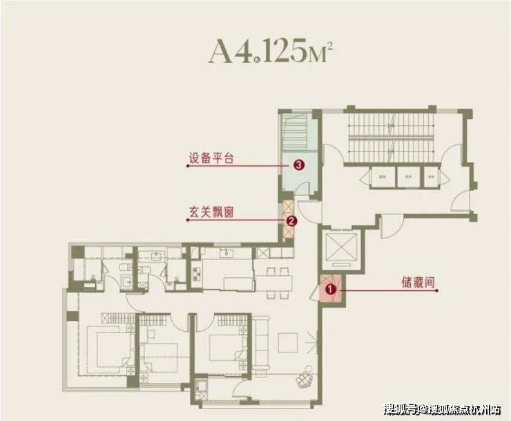 125边套户型:超越所有市面上的120平户型!需求改善产品必看项目!南向面宽达13.4m,四开间朝南,全卧超南。实得率超95%,多了20平空间,三阳台,满飘窗,设备平台,主卧室270°套间设计。层高3.15米。这个户型对比样板房,储藏间更大了,玄关收纳空间更大,收纳空间更多。