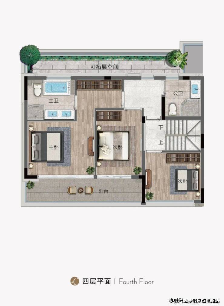 上叠:以195㎡的五房四卫,除了二层规划了朝北露台外,三层的空中阁楼,从多功能空间推门而出,竟然是一个“270°环幕式”生活露台,面积有70㎡左右。它可以是你抽离纷杂尘世的秘密花园,也可以是朋友聚会的快乐之地。
