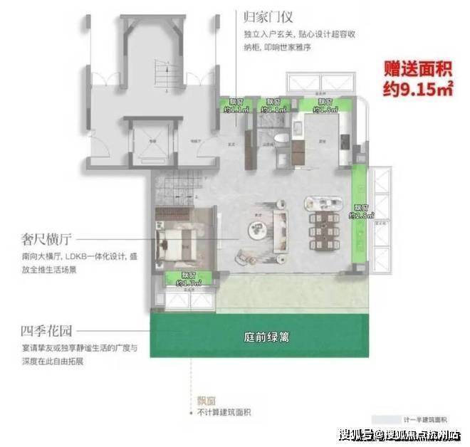 这个户型的附赠率,更高!实际可使用面积高达约234㎡,实得率超139%!