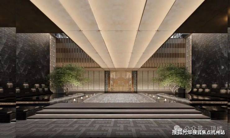 总长约88米、苏州首座大尺度流光造型宝顶及铂金长屏地标门厅;造价约150万、环岛中央非遗盆景