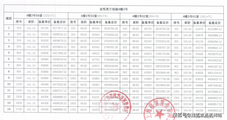 一房一价表: