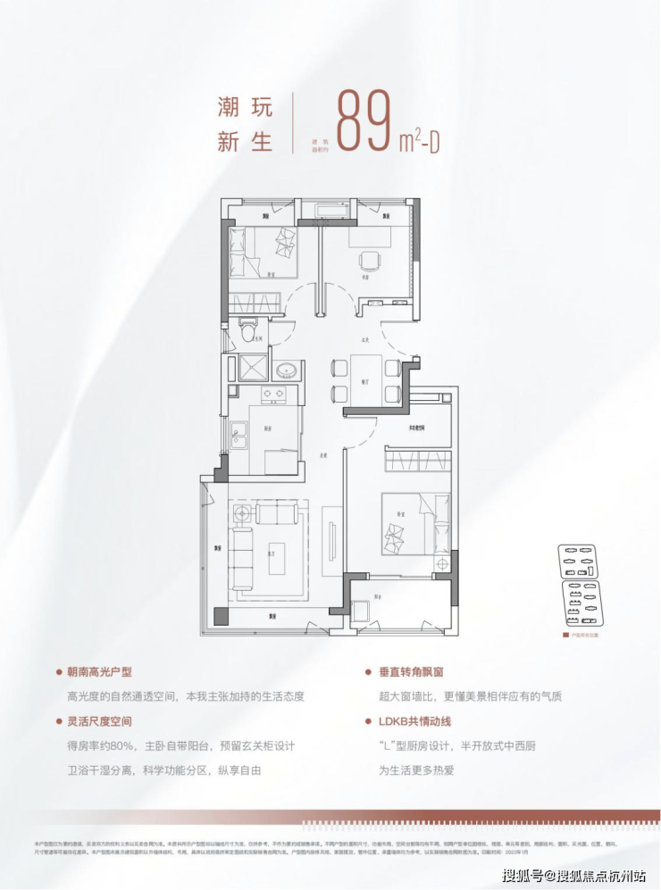 89㎡ 3房2厅2卫(规划)功能户型,入户洗手台规划设计,为业主在疫情常态化的新生活提供更健康的居家生活方式。
