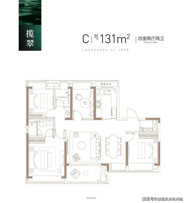 建面约131㎡4房2厅2卫, 两梯两户设计,给足了业主归家仪式感和尊崇感,同时拥有一个尺度阔绰的入户门厅作为自己家的延伸!