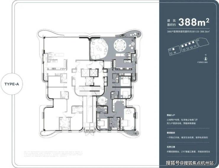 建面约180㎡/240㎡/290㎡/388㎡全线产品登场,这其中约290㎡是首开爆款户型,时隔1年后再度返场,江景首排占位,享无遮挡环幕视野!