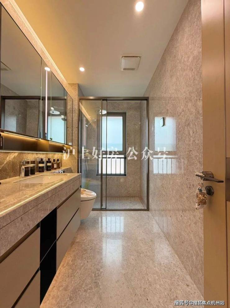 所有户型全屋墙纸交付,连电视机背景墙岩板以及主卧背景墙都是交付标准,卫生间甄选不同的石材,以此来满足功能区的需求。