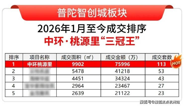 普陀桃浦智创城板块的【中环·桃源里】,1月至今狂销113套(网签数据存在滞后性,实际成交套数更多),不仅一举拿下板块成交金额、套数、面积“三冠王”,更登顶外环内“中心七区”成交套数TOP1,成为改善市场的绝对黑马。