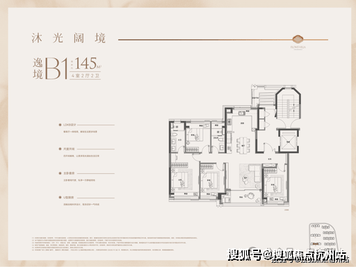建面约 145㎡四房两厅两卫:四开间朝南,南向面宽约14 米,南北通透、全明格局,超阔横厅 + 双阳台,空间尺度感极强,四房设计适配三代同堂、二胎家庭,主卧尊享独立卫浴、步入式衣帽间,附赠约 **10㎡** 拓展空间。