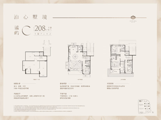 建面约 208-216㎡叠加别墅:上叠享专属露台,下叠拥庭院 + 地下室,上下分层、动静分区,有天有地,私密性与尊崇感拉满,总价约2550-3600 万,是高净值人群的藏品级选择。
