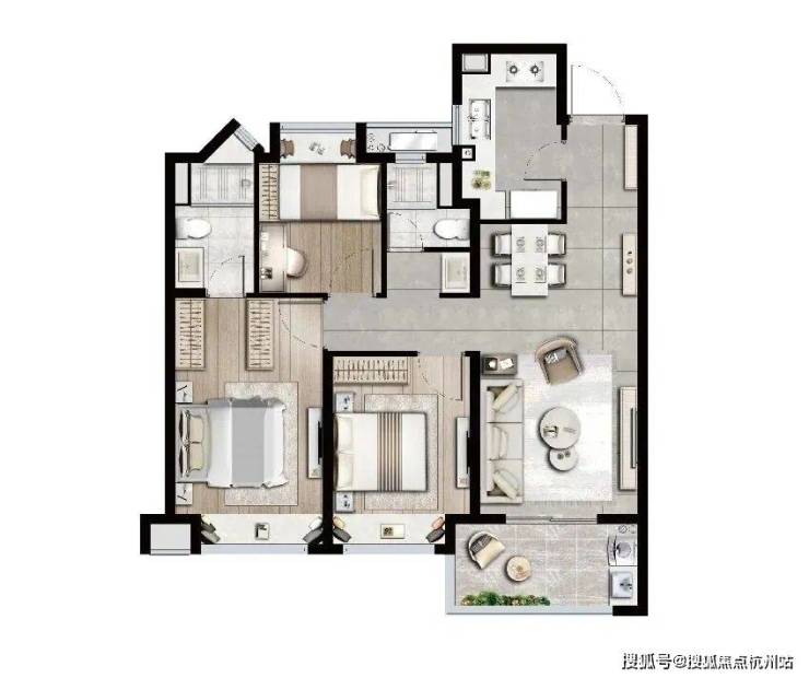 建面约86m²B样板间实景图