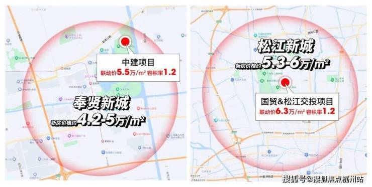 比如奉贤新城均价普遍在4.2-5万/㎡,而容积率1.2的中建项目联动价高达约5.5万/㎡;