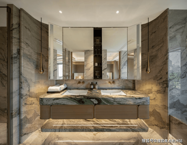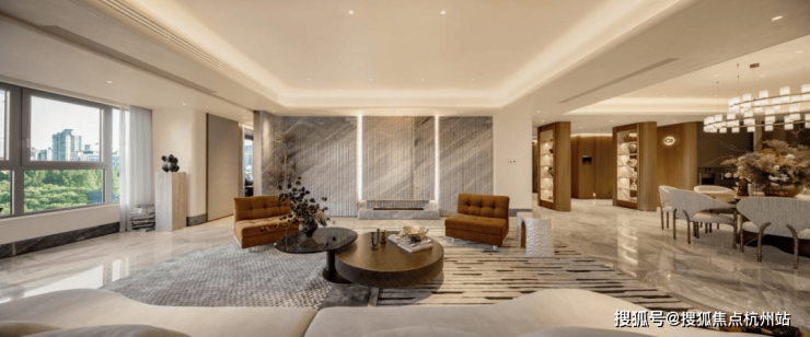 豪宅中,会所+泳池已成为市场标配,但是中兴傲舍却将之与艺术融合,把艺术变成了生活的一部分。14.5米超高挑空的归家大堂,搭配三大园景礼序和七重风雨连廊,从进门就仪式感爆棚。