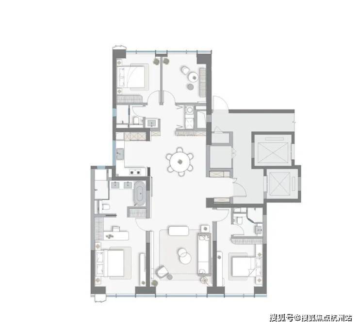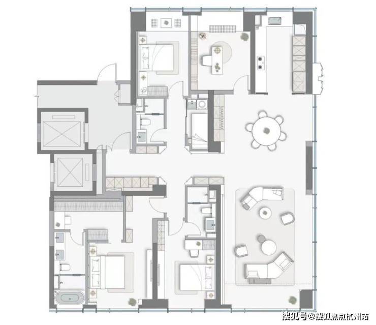 户型鉴赏:纯粹圈层,尺度非凡 龙湖·山河颂定位极为纯粹,主力户型为约190㎡至249㎡的天际大平层,起步就是四房,面向苏州真正的高净值人群。这意味着,您的邻居都是与您品味、实力相当的塔尖人士,圈层纯粹而优质。