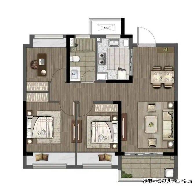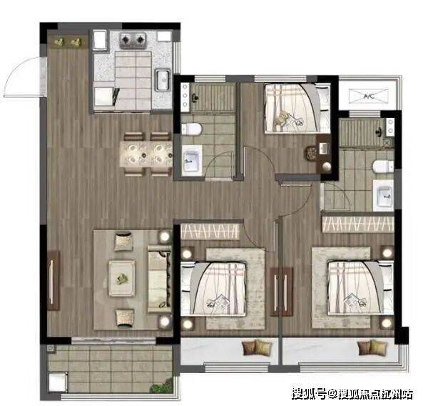 115户型,三室两厅两卫的户型设计,延伸不同家庭结构的需求。入户玄关,格局全明方正,动静分区,日常起居互不干扰,餐客一体的大进深奢阔空间,承载全家人的理想生活。一厅双卧,三开间朝南的大尺度采光,从客厅到主次卧,都能在大飘窗或是阳台前,一揽实景园林的诗意。