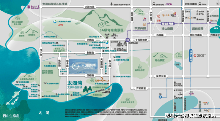 中国・苏州・吴中区香山街道伍相路与天镜南路交汇处(太湖度假区核心,距太湖约 1 公里,背靠穹窿山 5A 景区)