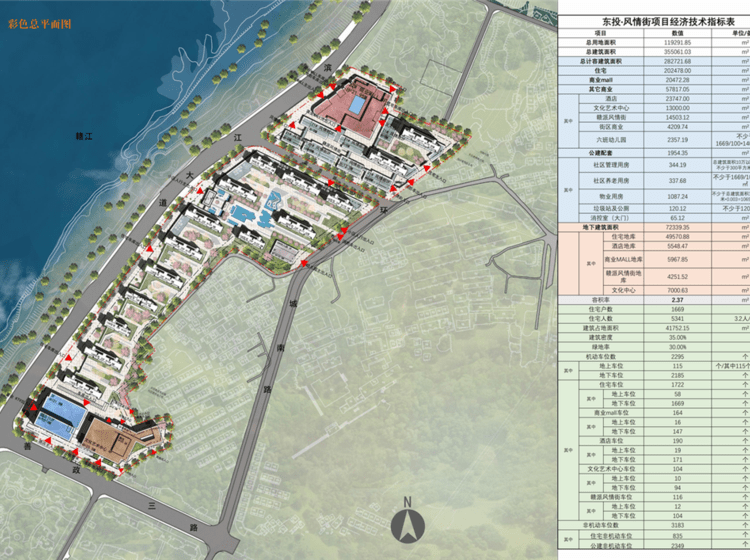 "新干东投·风情街项目位于新干县滨江大道以东,项目总占地面积119291.85㎡(约178.94亩)。项目由东投地产集团投资开发,总投资约20.06亿元,容积率2.37,建筑密度35%,绿地率30%。项目总建筑面积355670.58㎡,其中住宅建筑面积约202478㎡,商业mall建筑面积约20472.28㎡,酒店建面约23747㎡,文化艺术中心建面约13000㎡,赣派风情街约14503.12㎡,街区商业约4209.74㎡,幼儿园约2357.19㎡ 东投·风情街项目是新干县较大规模、档次较高、业态最丰富、功能最完善的滨江城市综合体,集江景豪宅、赣派风情街、潮流mall、四星级酒店、文化艺术中心、幼儿园六位一体,重新定义新干商业中心。万千繁华汇聚于此,步步高超市、格兰云天大酒店现已意向签约入驻,百余个品牌商家纷纷意向入驻,先进财富深蕴商机无限。