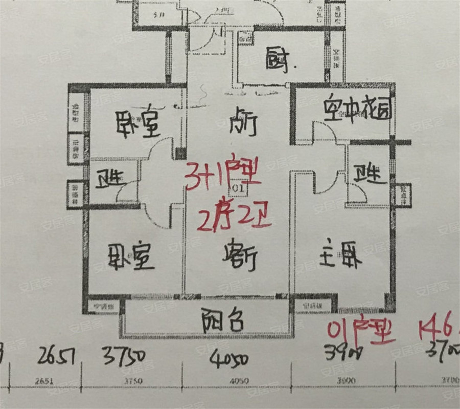 4室2厅2卫-19栋01户型 建筑面积约146㎡