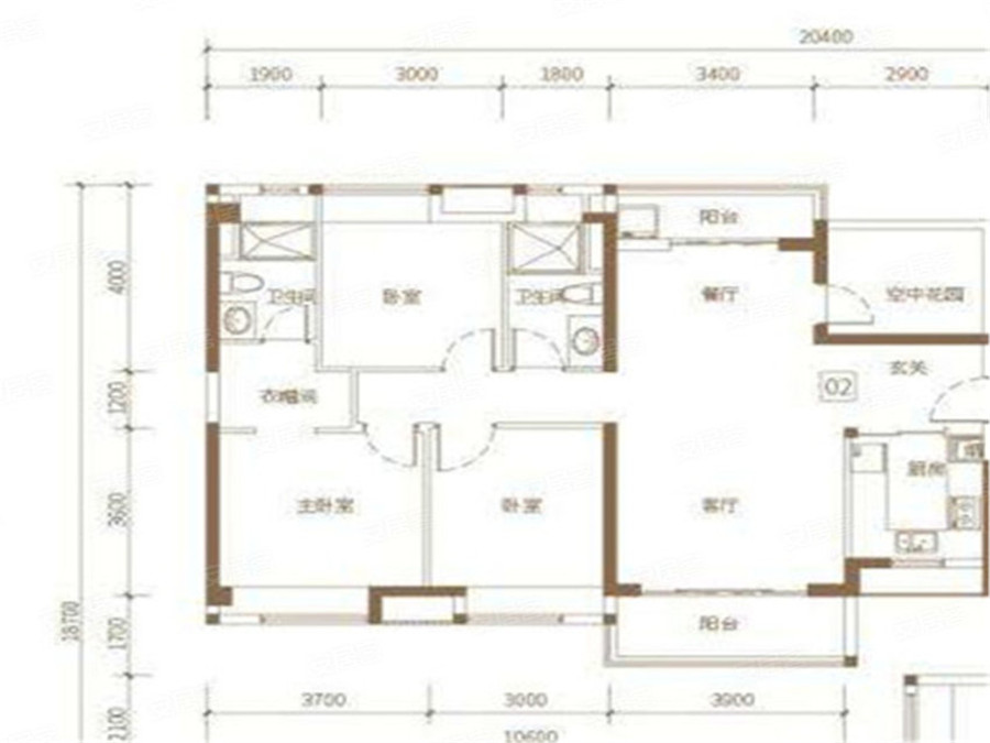3室2厅2卫-8栋01/04户型 建筑面积约102㎡
