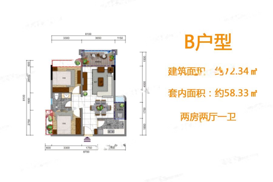 2室2厅1卫-B户型