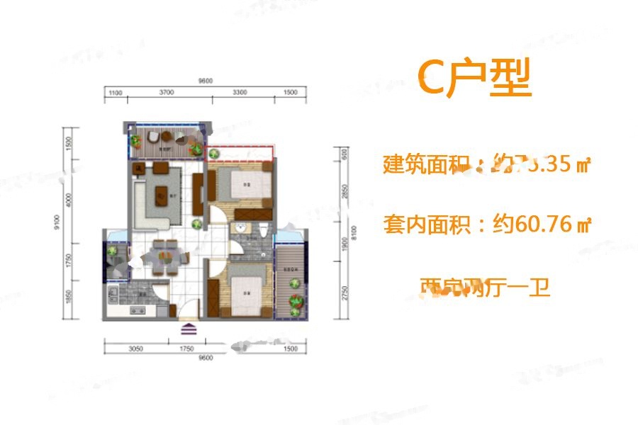 2室2厅1卫-C户型