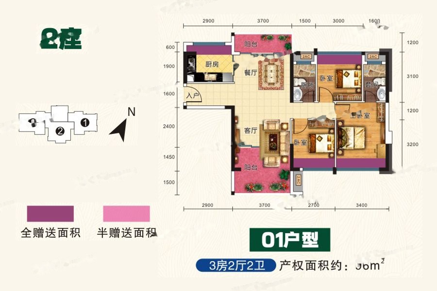 3室2厅2卫-2座01户型