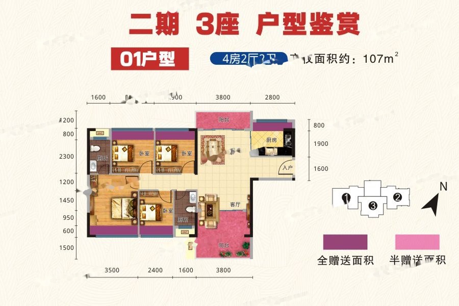 4室2厅2卫-二期3座01户型