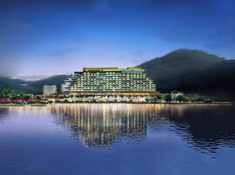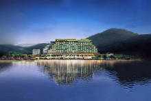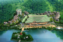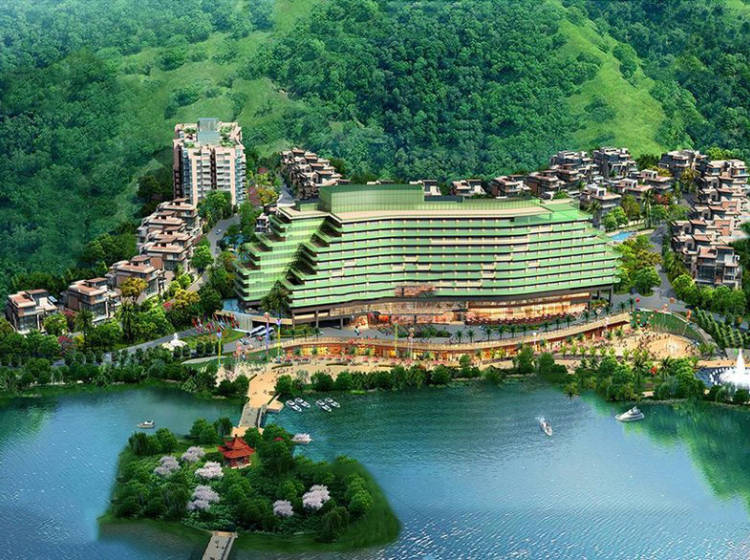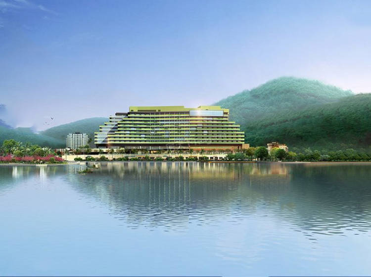 逸林山庄项目位于江门市新会区圭峰路233号玉湖畔,由著名美国捷得建筑事务所设计。总占地面积105600㎡,约150亩,总建筑面积为13.6万平方米,项目容积率是0.76,绿化率高达65.98%。其中,一期为希尔顿逸林酒店,二期为37幢独栋别墅及2幢9层高半山公寓组成。