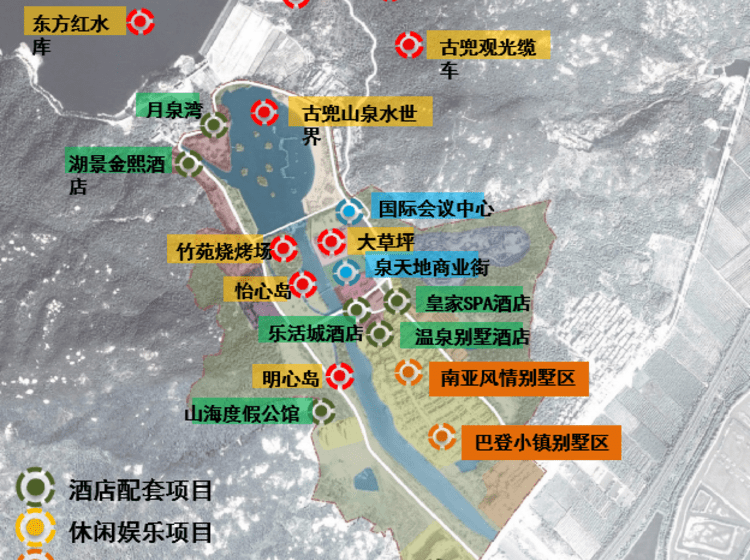 酒店配套:皇家SPA酒店、湖景金熙酒店、月泉居酒店、 山海度假公馆、山海度假公寓酒店、温泉别墅酒店、乐活城酒店