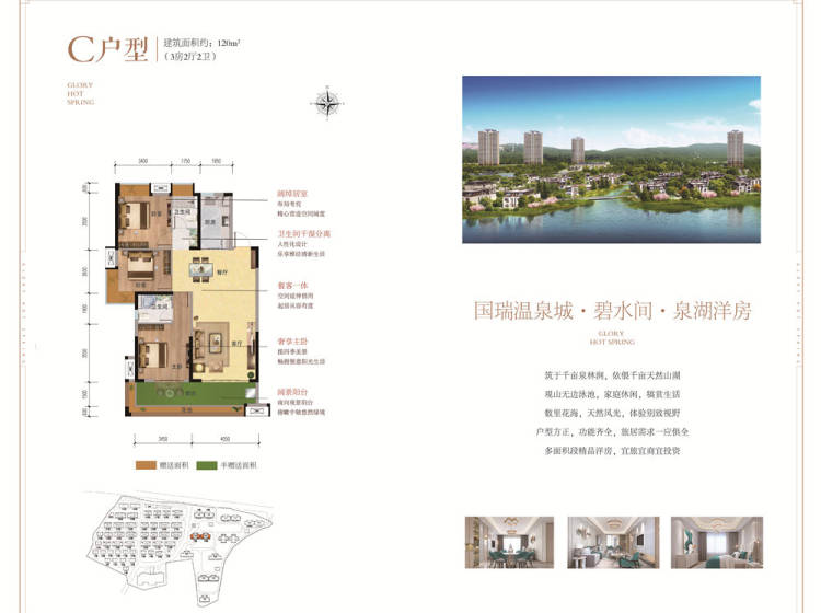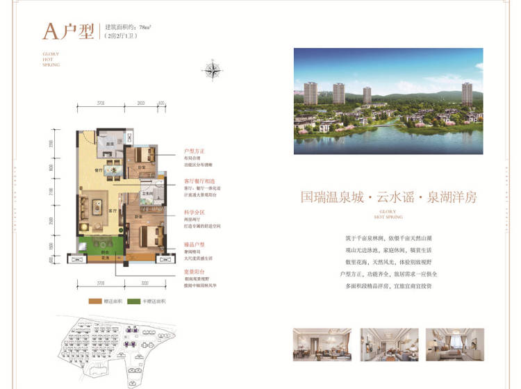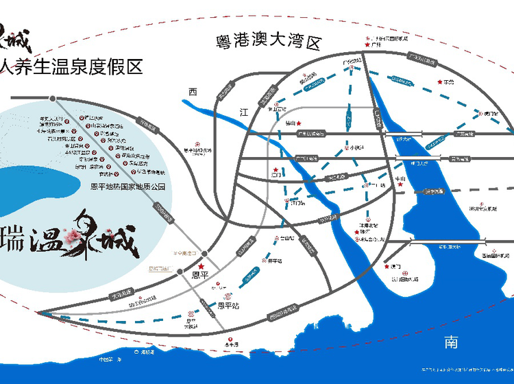 国瑞温泉城,山湖温泉度假城,位于中国温泉之乡,广东恩平良西镇,紧邻沈海高速开阳段圣堂出口,距深湛高铁恩平站约20分钟车程。项目规划近1500亩,产品涵盖77-120㎡泉湖洋房,150-230㎡温泉别墅,将引入天然温泉,配备半山温泉馆、大型温泉泳池、五星级标准酒店,与国内知名三甲医院合作的体检中心、康养理疗馆、果岭体验区等配套,打造为集温泉养生、特色酒店、商务休闲、亲子旅游、生态观光、特色体验与居住于一体的综合性四季旅游、度假康养胜地。
