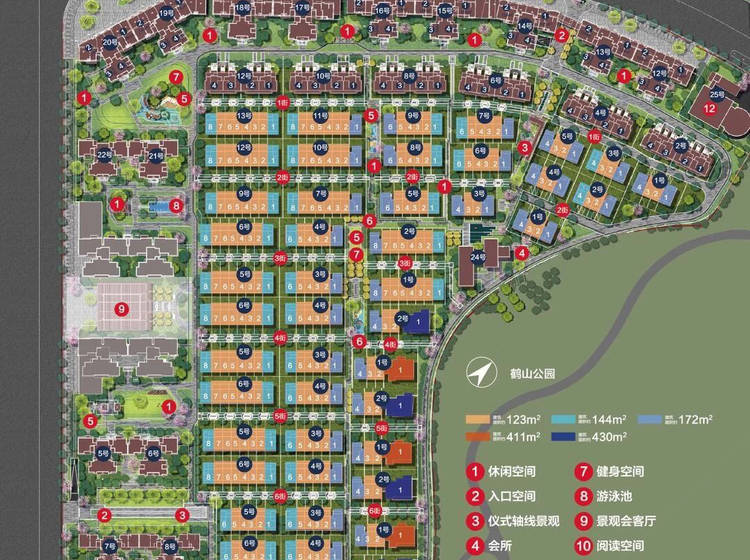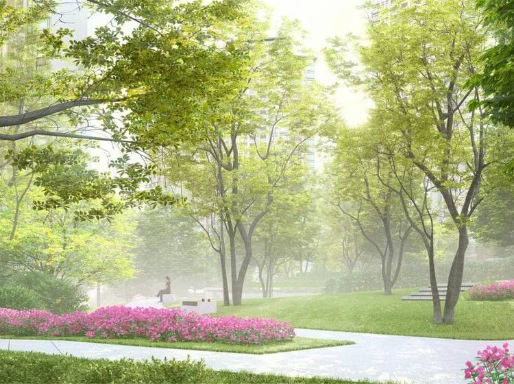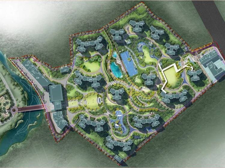 绿地公园城二期中的一期总建面约29万㎡,约1912户。项目遵循 “公园里的住区”“住区里的公园”的打造理念,让景观“物尽其用”,考究楼栋的布局和户型的布置,让尽可能多的住户从尽可能多的角度享受景观,与自然互动,所以整体项目的建筑沿着地块红线布局,把尽可能多的空间留出来,内部则根据地形,形成较大尺度的景观内庭院,与前花园——鹤山公园建立呼应,形成主次分明,起承转合,节奏明快的公园景观,让小区庭院成为公园的一部分。1座彩虹桥、2个自然湖泊、3片原始密林、4级皇家台地景观、326米超宽楼距、900㎡无边际泳池、1.2公里夜光跑道、1.5公里私家林荫步道等等。