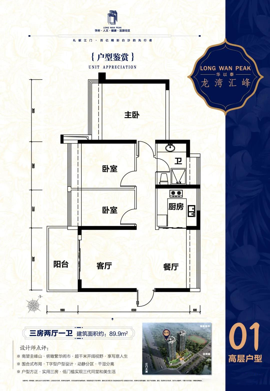 华以泰·龙湾汇峰,坐落于粤港澳大湾区西翼枢纽门户——江门,这座素有中国侨都之称的城市,地处江门大道和龙湾路交界处东北侧,毗邻江门培英高级中学,区域配套完善,属于蓬江区、新会区两区交界之处,江门“三旧”改造计划的重点发展区域,未来将营造繁华的缤纷大都会,为城市焕发新貌。项目现处于施工阶段,规划89-115方学府高层、一线临街旺铺,预计2020年下半年推出