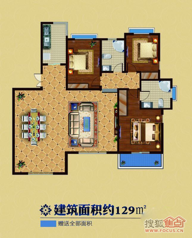 建面129m²