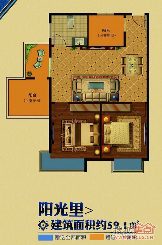 建面59.1m²