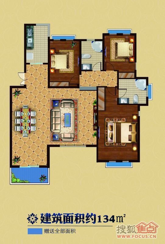 建面134m²