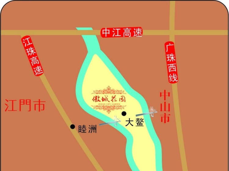 金碧丽江·傲城花园,位于江门新会区大鳌镇。东邻中山,南望珠海,西接新会,北近江门,踞温泉新城之中心,距新会区仅30分钟车程。 傲城花园是大鳌排名前列商品房项目,沉寂多年的鳌岛生活格局因此而改变。在这里你可以充分体会都市的繁华,尊享城市人的梦想,品味排名前列花园社区,电梯物业以及完善的社区配套和尊贵的物业管理服务,体会上层社会的都市生活氛围。傲城花园紧靠南沙村和深滘村,基本配套设施完善,与大鳌镇中心仅3分钟车程,交通便利。