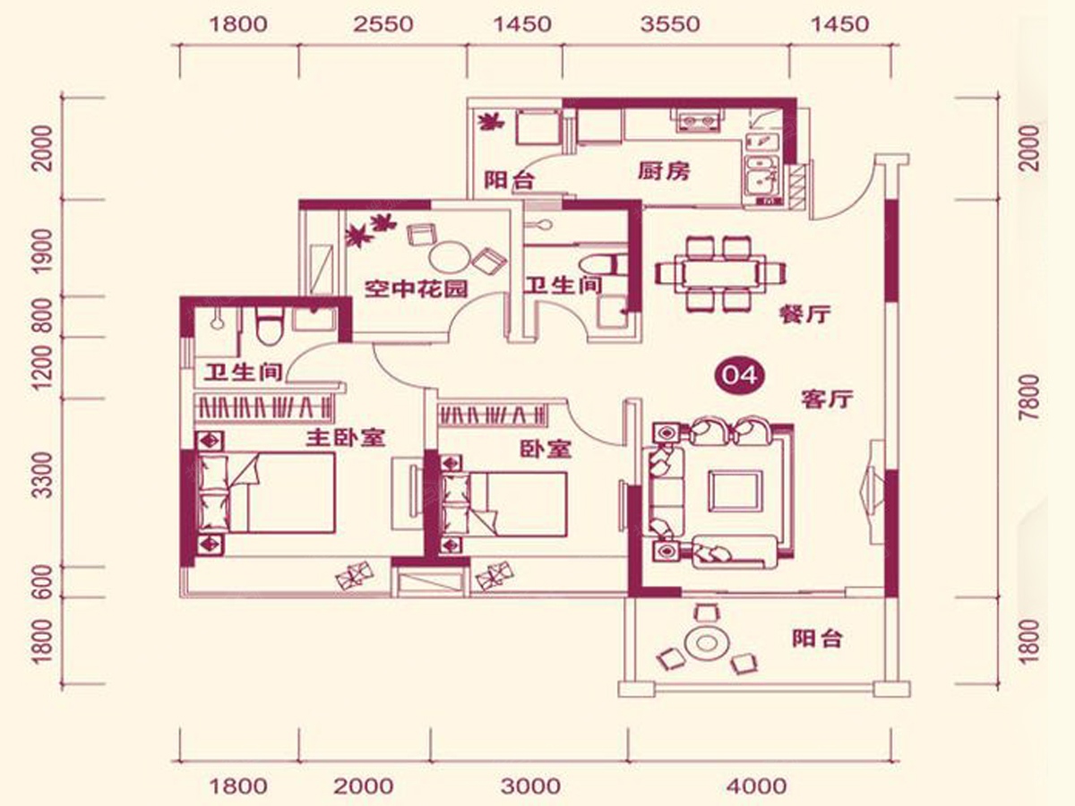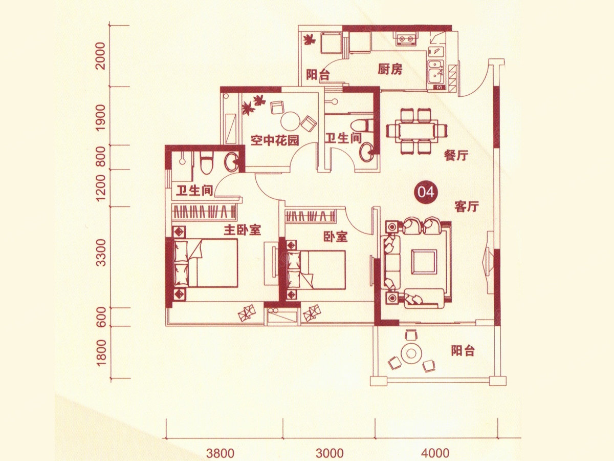 2室2厅2卫-16幢04户型