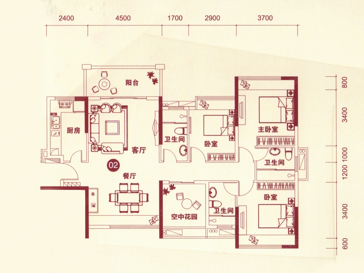 3室2厅3卫-15幢02户型