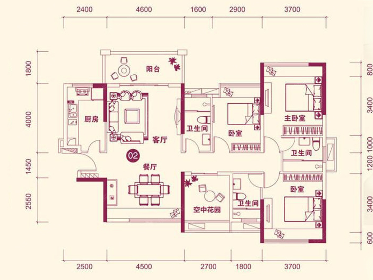 3室2厅2卫-16幢02户型