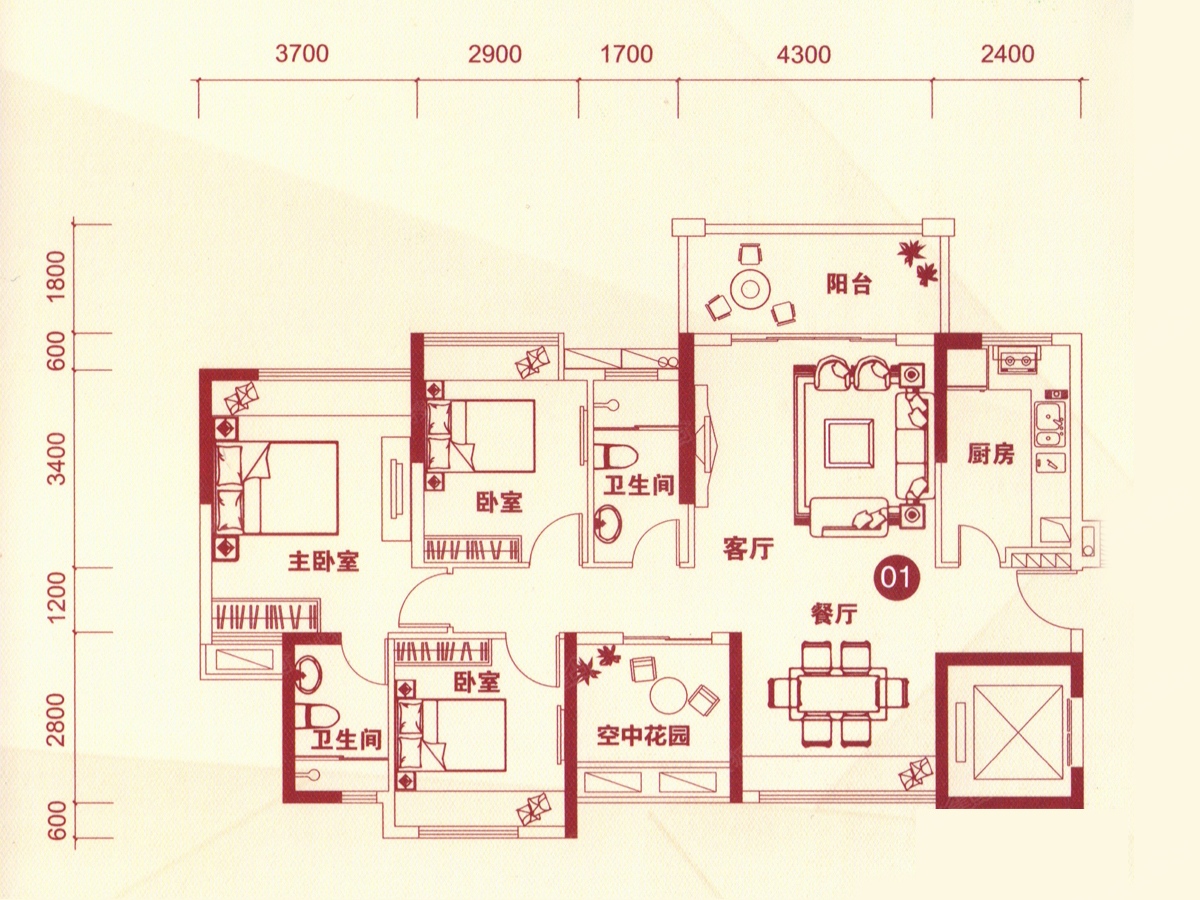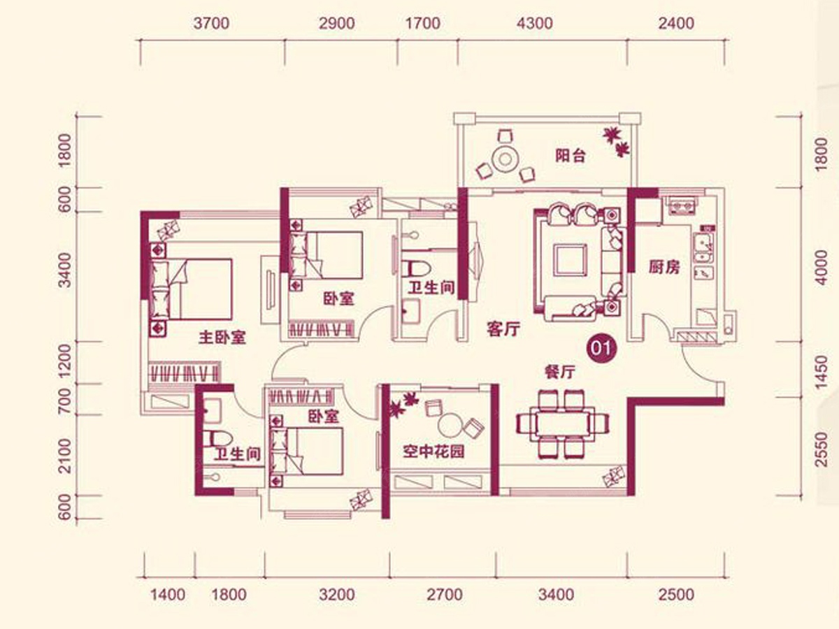 3室2厅2卫-16幢01户型