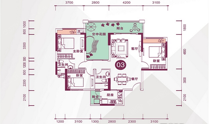 2室2厅2卫-16幢03户型