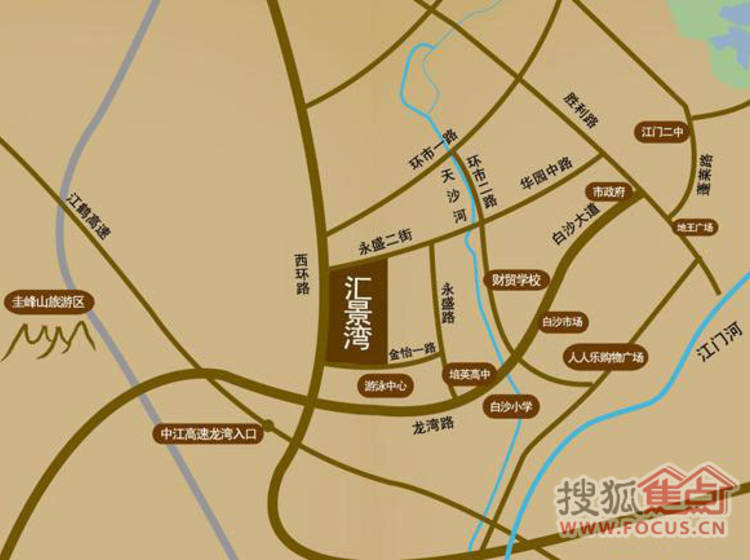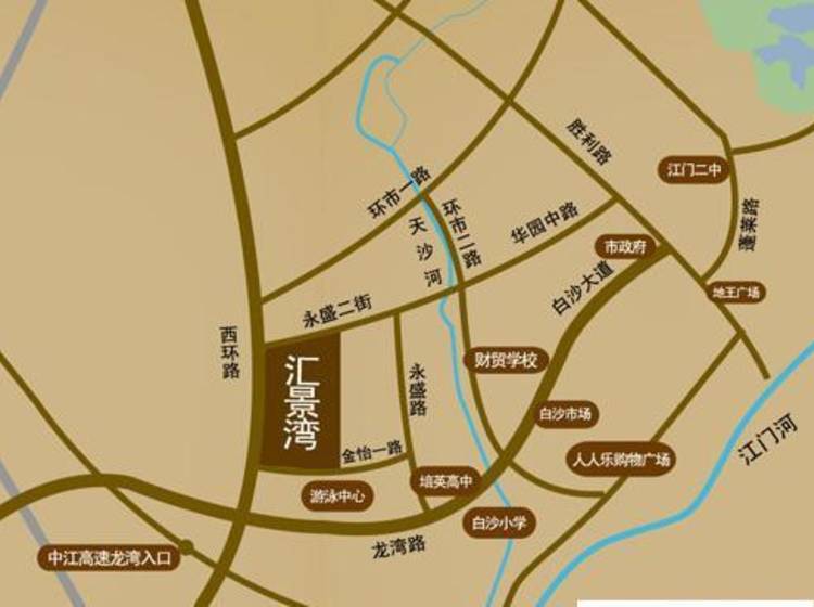 汇景湾坐拥百年成熟文化西区,距离城市中心地段仅数分钟车程,8分钟车程即可到达江门市政府、人人乐购物商场、地王广场、文华书城等行政商业圈。成熟的老城配套,为汇景湾的幸福生活奠定了坚实的基础。