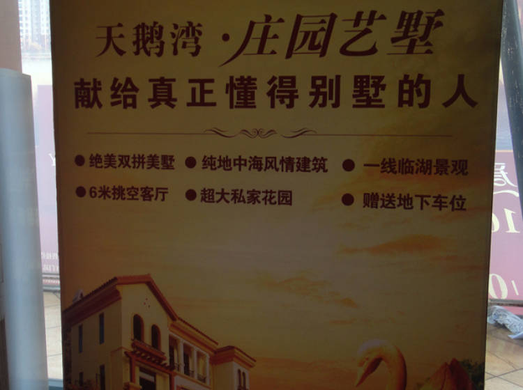 天鹅湾是由江门市东华房地产开发有限公司投资开发的房地产项目,该项目位于江门市南新区,东临银泉路,西邻东海路,南依江海区政府,北靠白水带生态自然风景区。别墅产品的设计在景观营造中引入“前庭后院”的西班牙建筑设计理念,前花园突出起展示功能,通过和谐配搭软景和硬景,在统一设计的理念下,形成各具特色的花园景观效果 。