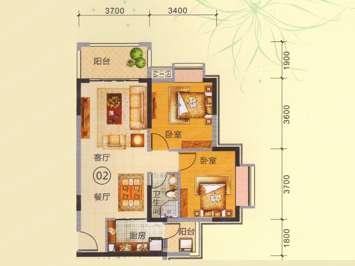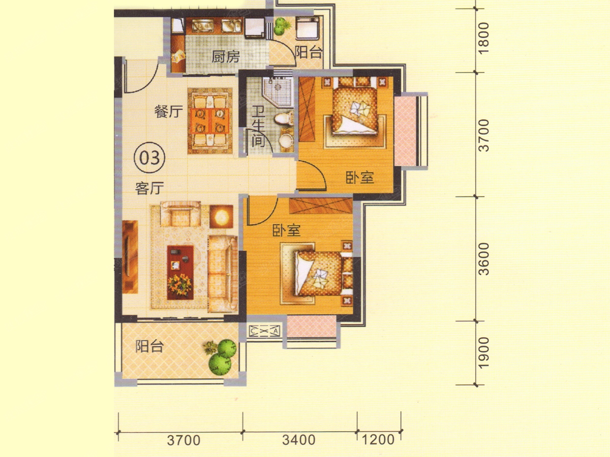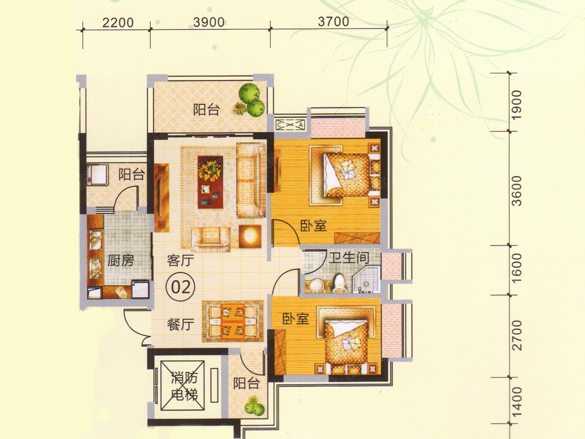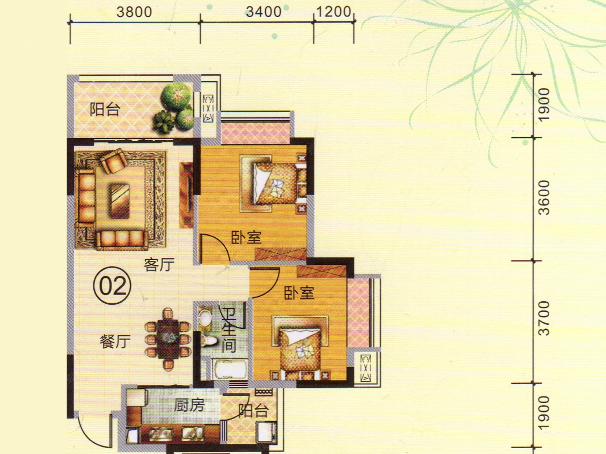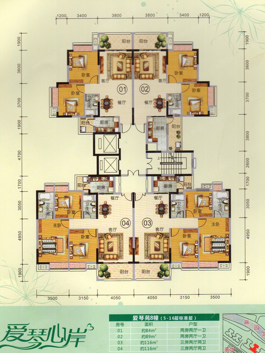 2室2厅1卫-爱琴苑8幢(5-16层标准层)