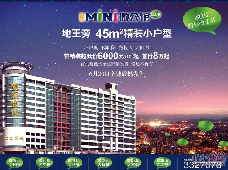 象溪·MINI微公馆位于江门市区建设路旁,共有298套精品小户型,55㎡-84㎡,享用50年。象溪·MINI微公馆周边生活配套成熟,精彩的微生活一呼百应,项目位于江门市区建设路 广场旁,座落在历史悠久、商业繁华的常安路商圈内,相邻常安步行街、长堤风貌街。周边20多路公交车贯连市区和直达新会、鹤山两市区大部分乡镇,交通极其便利,具有商业地缘的 。