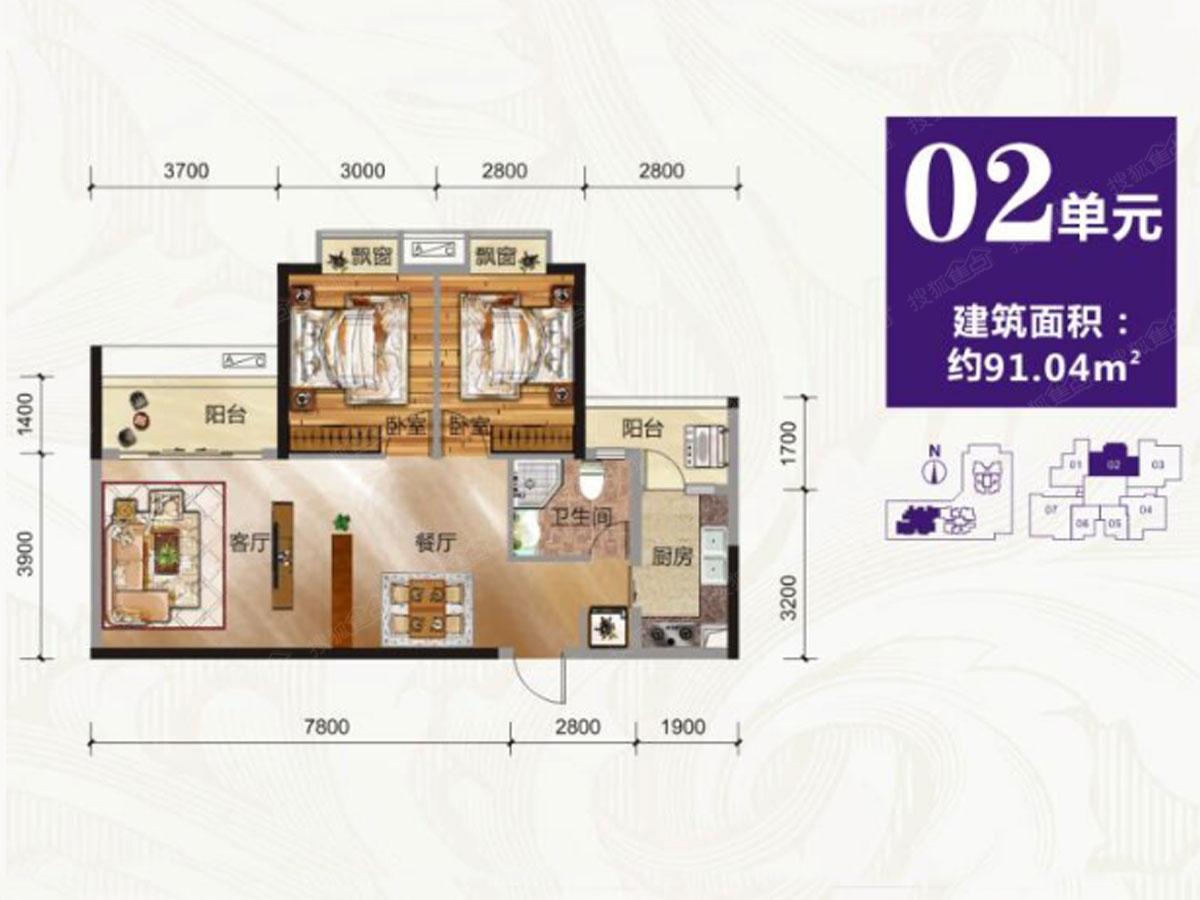 53万/套 建面91.04m²