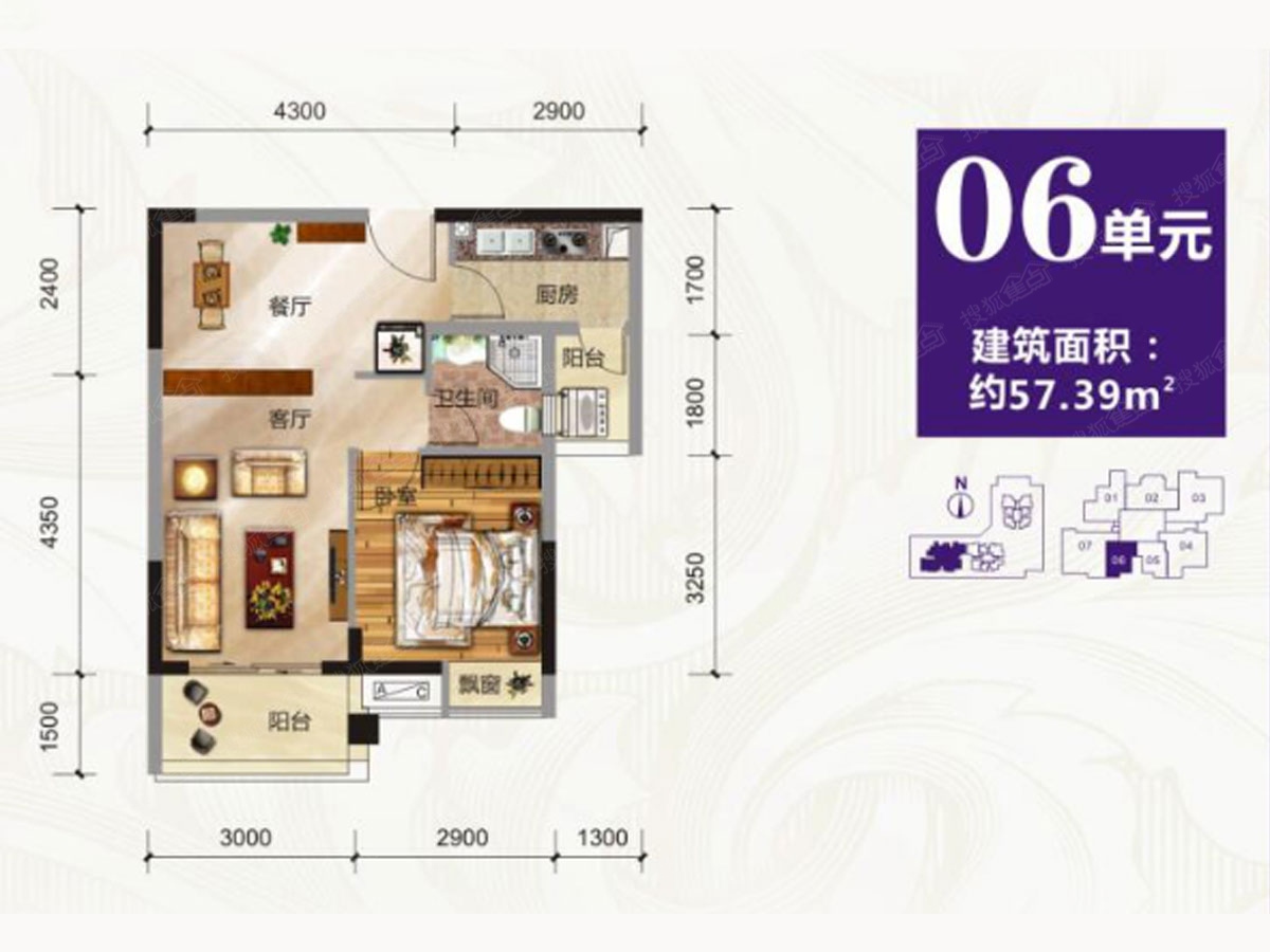 33万/套 建面57.39m²