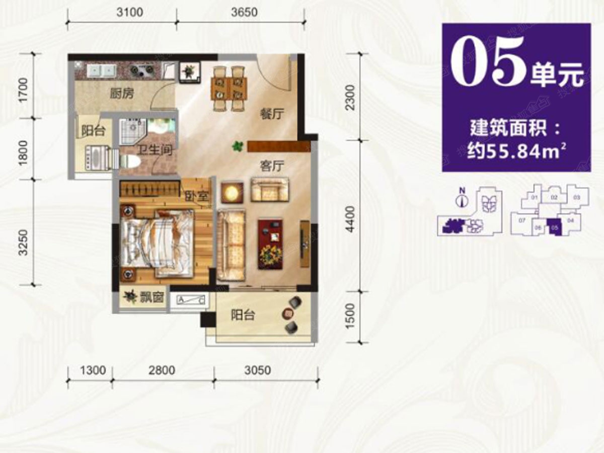 1室2厅1卫-1幢05单元