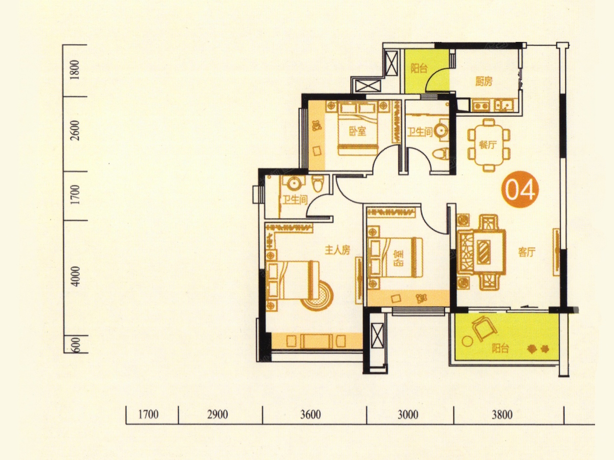 3室2厅2卫-4幢04户型