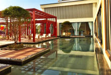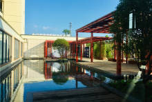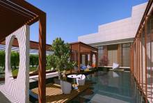 新东方园林—— 传习东方人居文化,萃取新亚洲建筑风情魅力元素,将建筑与园林景观糅合于森林呼吸之中,在简约和淡雅中回归自然本真。流水潺潺,竹林密语,曲径蜿蜒,高氧宜居。