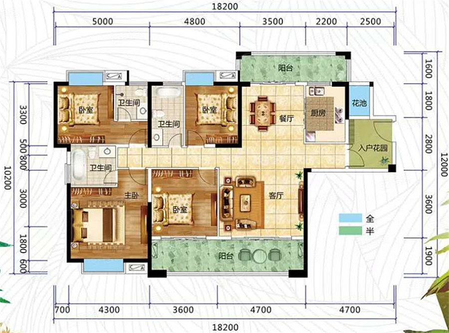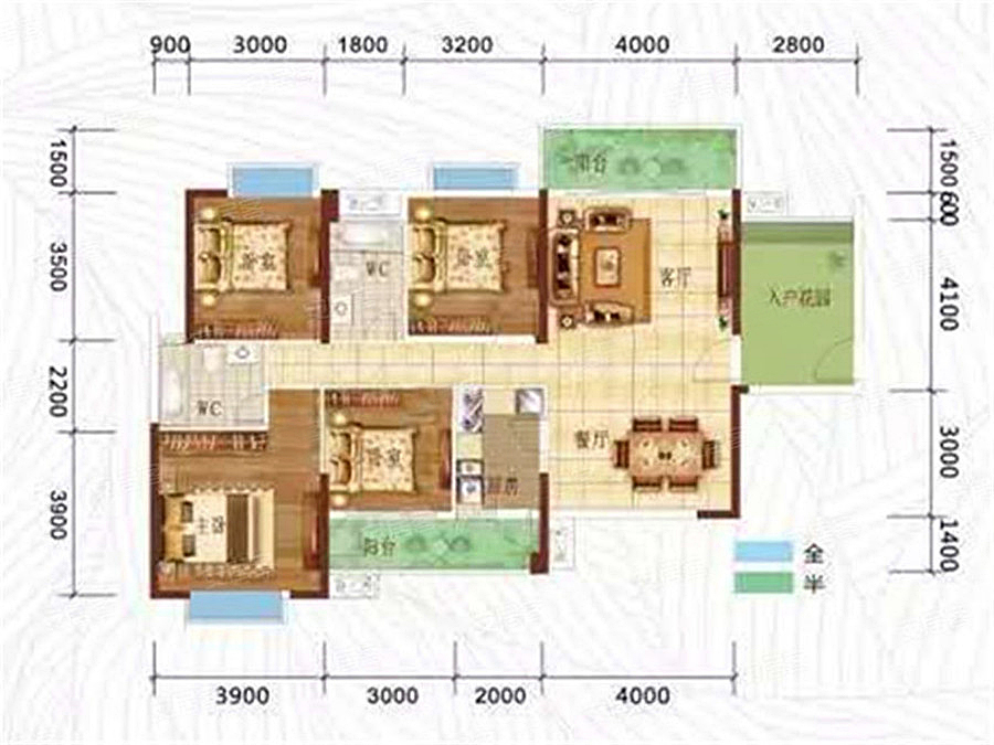 4室2厅3卫-3/4栋B座01户型 建面约166㎡