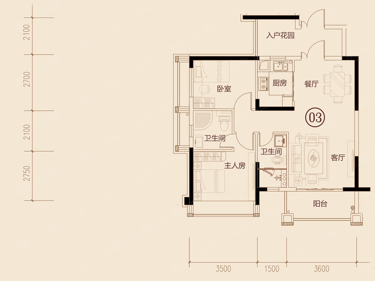 2室2厅2卫-2栋03户型